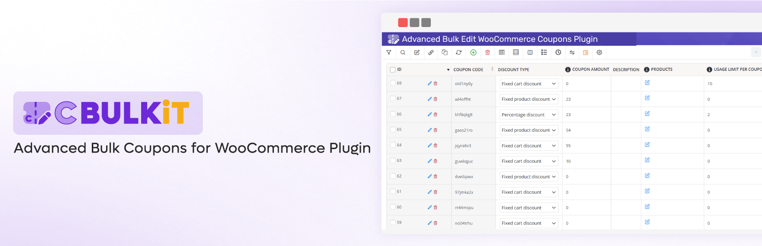 - Adding or editing coupons in a short time For example, if you have coupons specific details, it is a difficult task to update all details of coupons. This Bulk Edit plugin helps to do the bulk editing job easier with a lot of bulk editing options and support for any coupon related properties and fields.