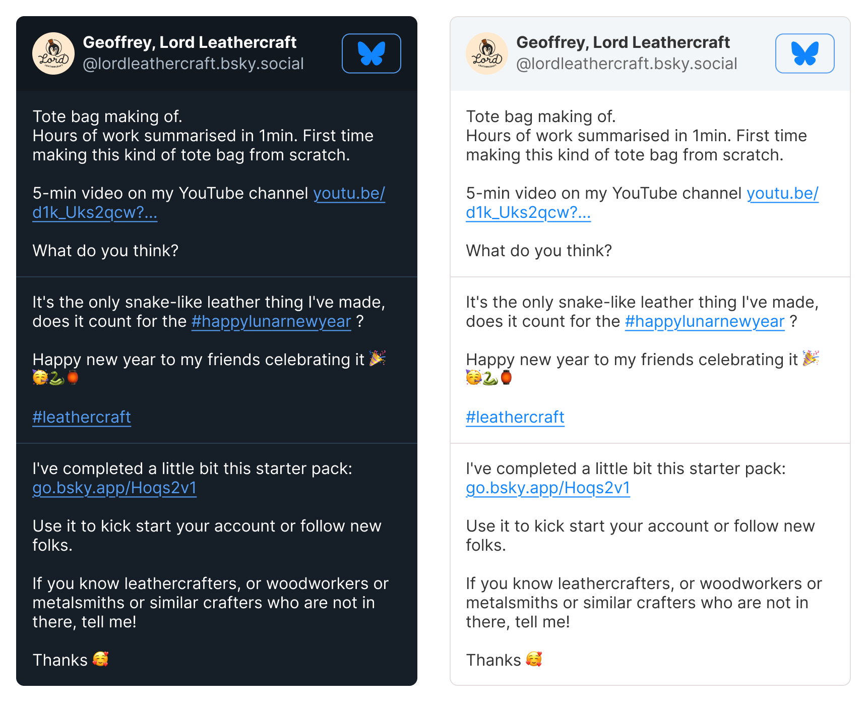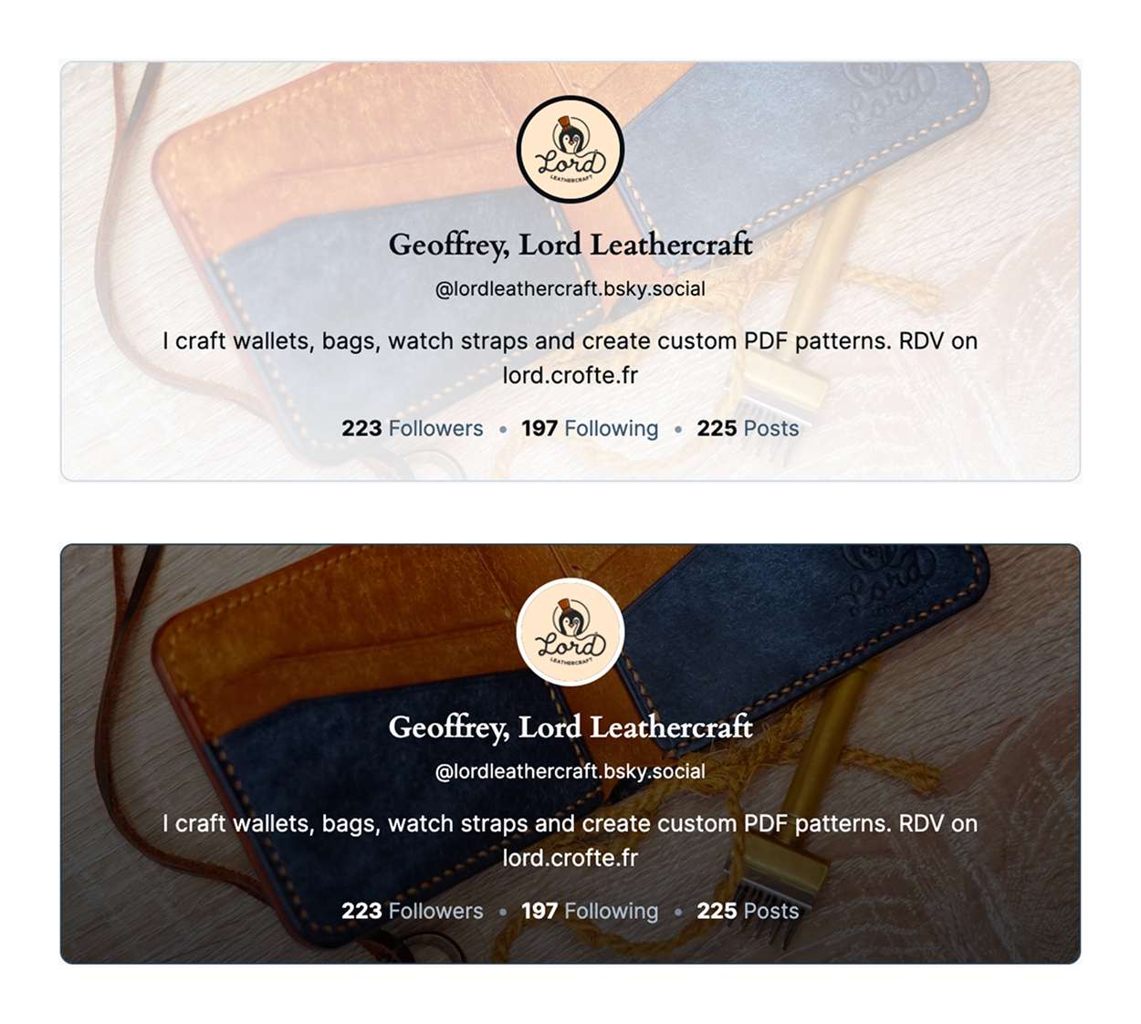 The “Compact” layout for the BlueSky profile banner in light and dark modes.