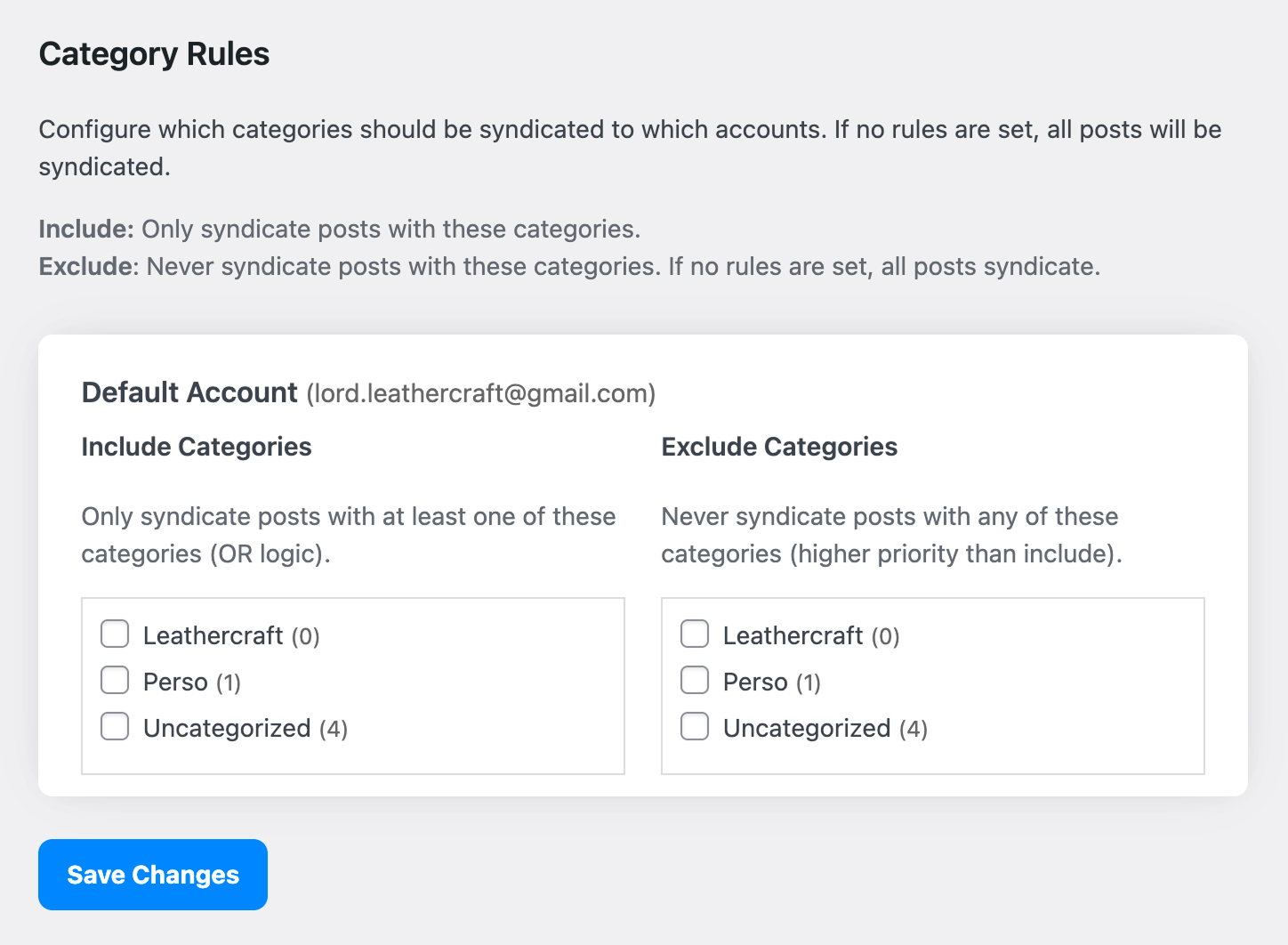 - Associate auto-syndication of a specific category to a specific Bluesky account. (include/exclude mechanics)