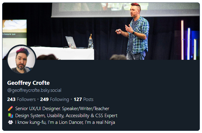 [bluesky_profile theme="system" layout="default" styleclass="" displaybanner="true" displayavatar="true" displaycounters="true" displaybio="true" account_id=""]