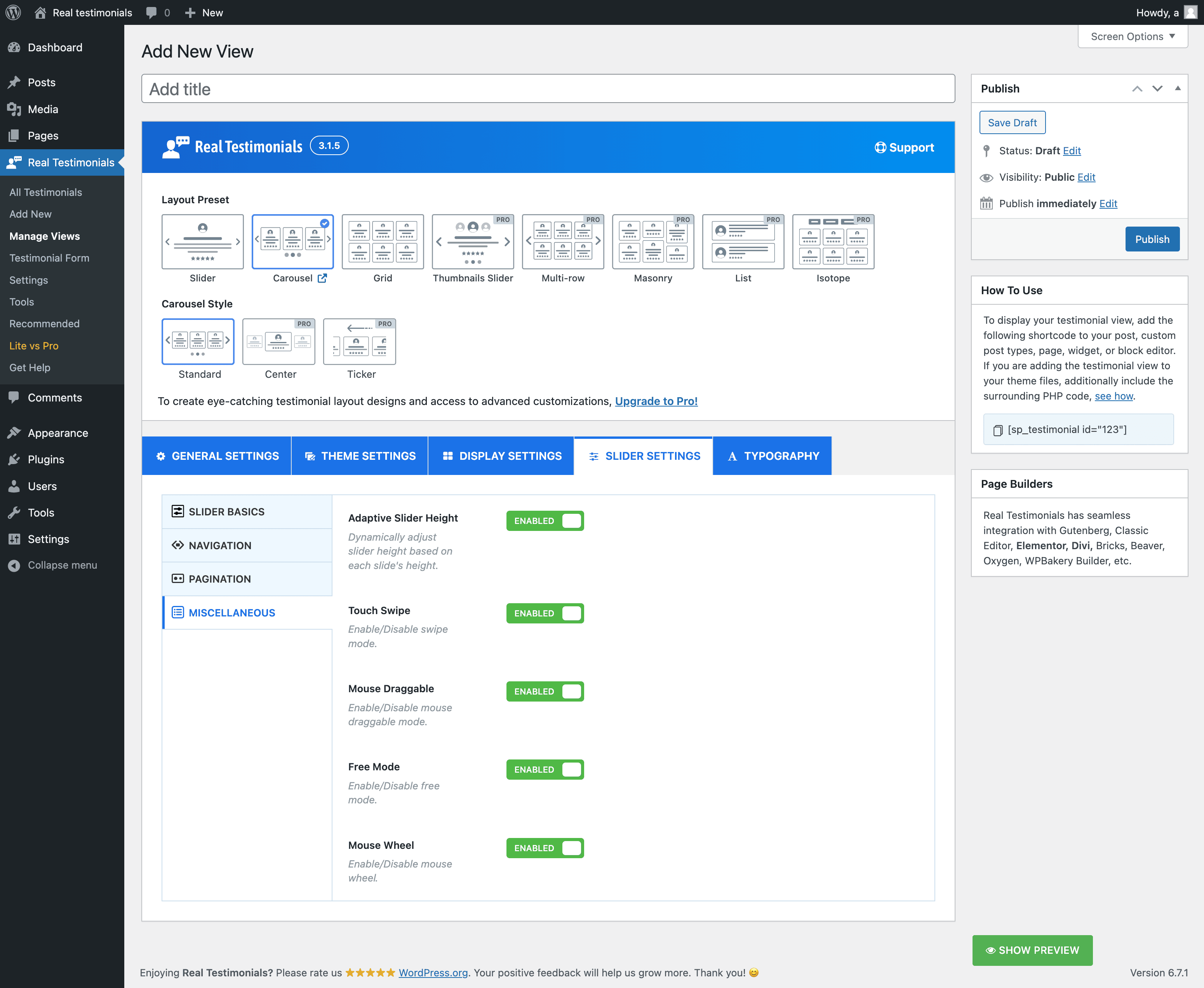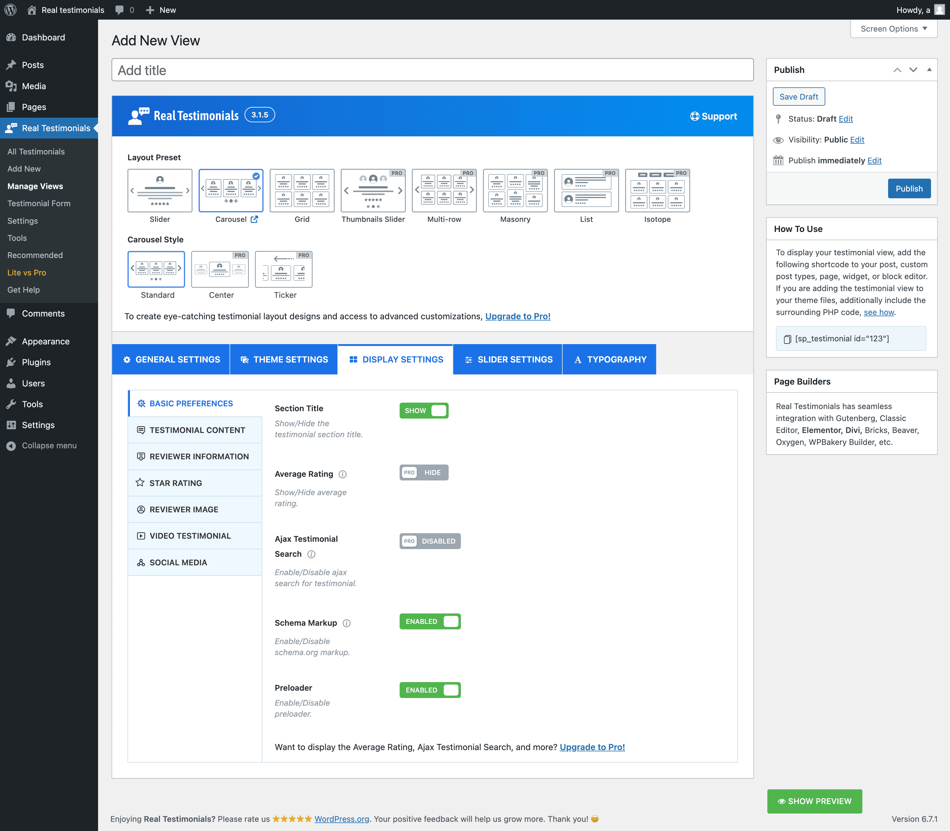 Real Testimonials Pro Features