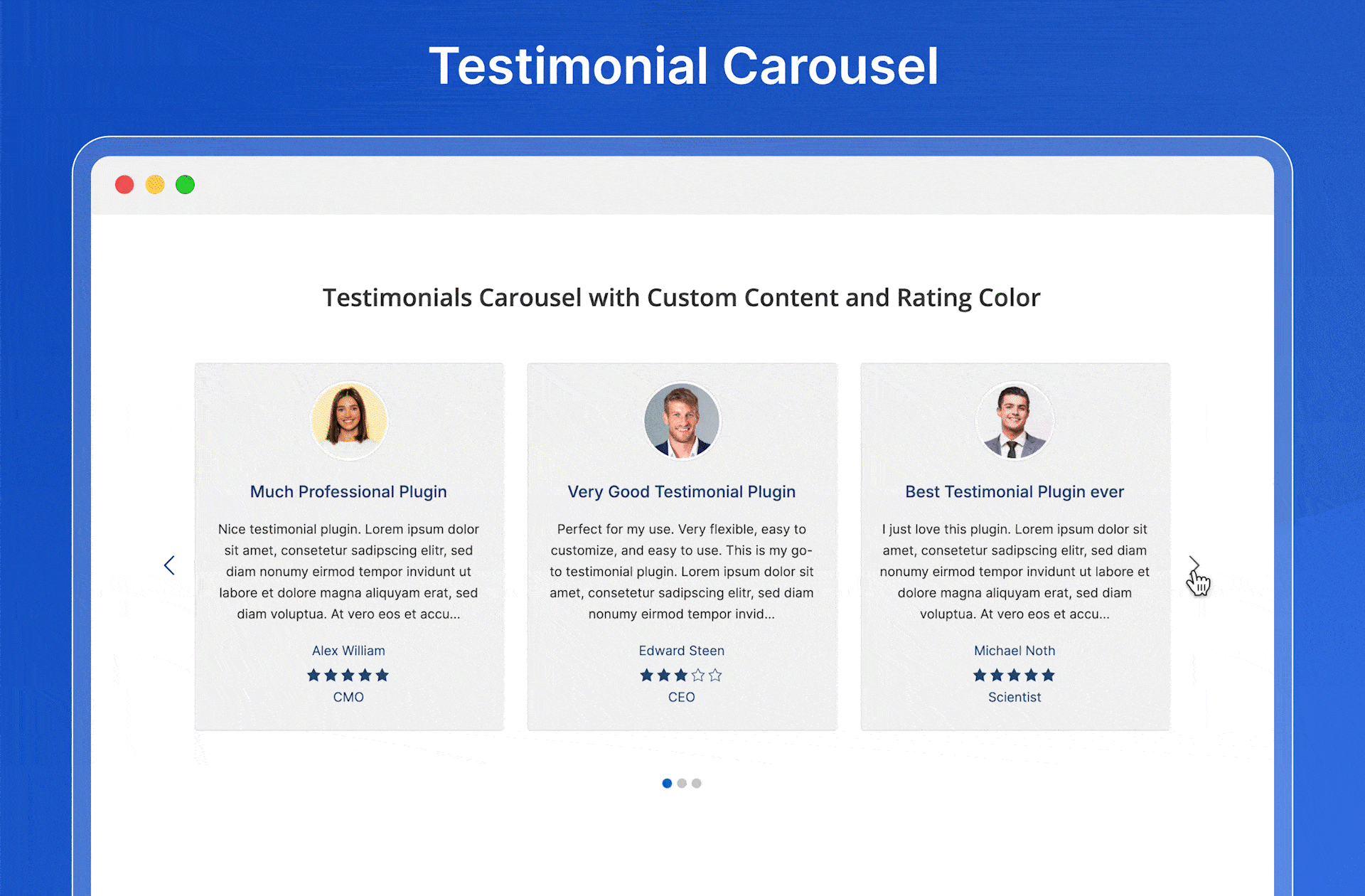 - Unique settings for each testimonial slider.